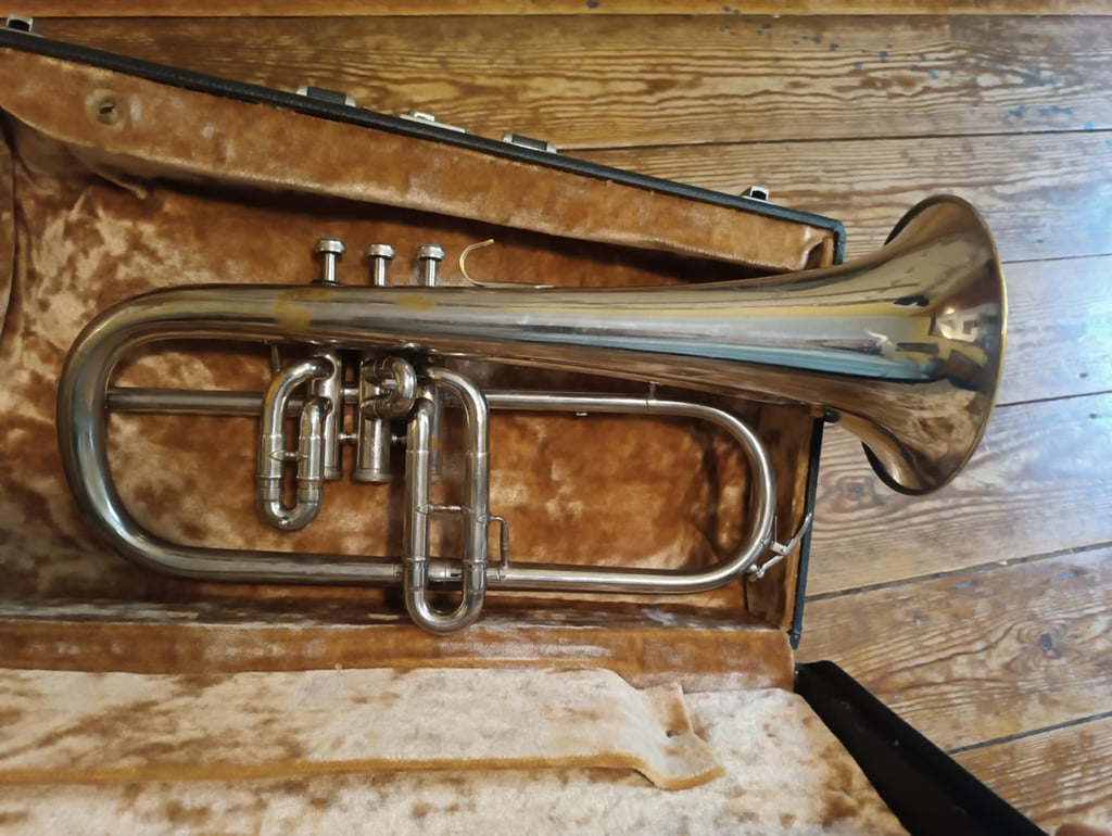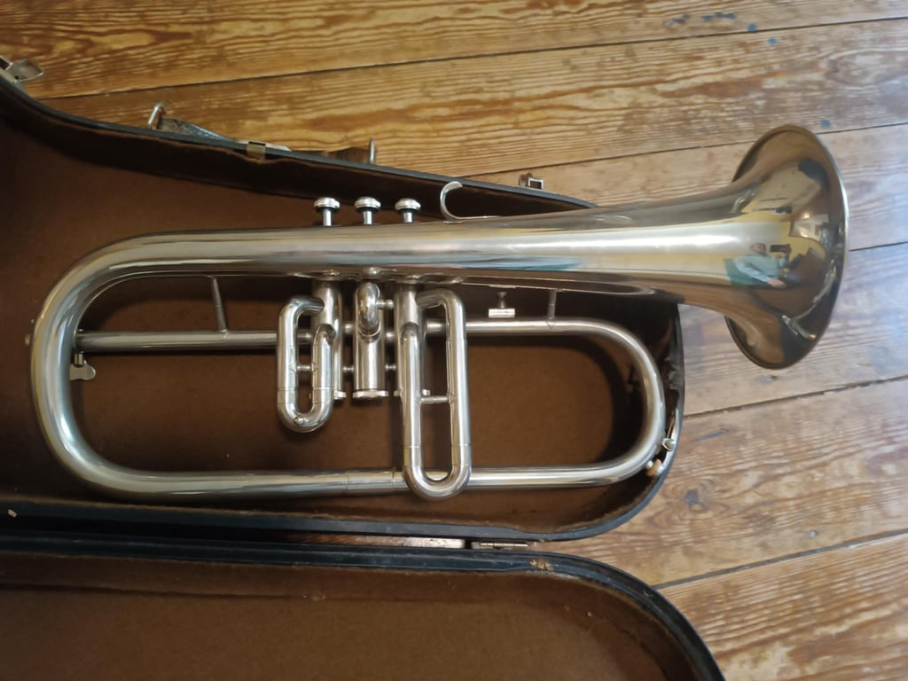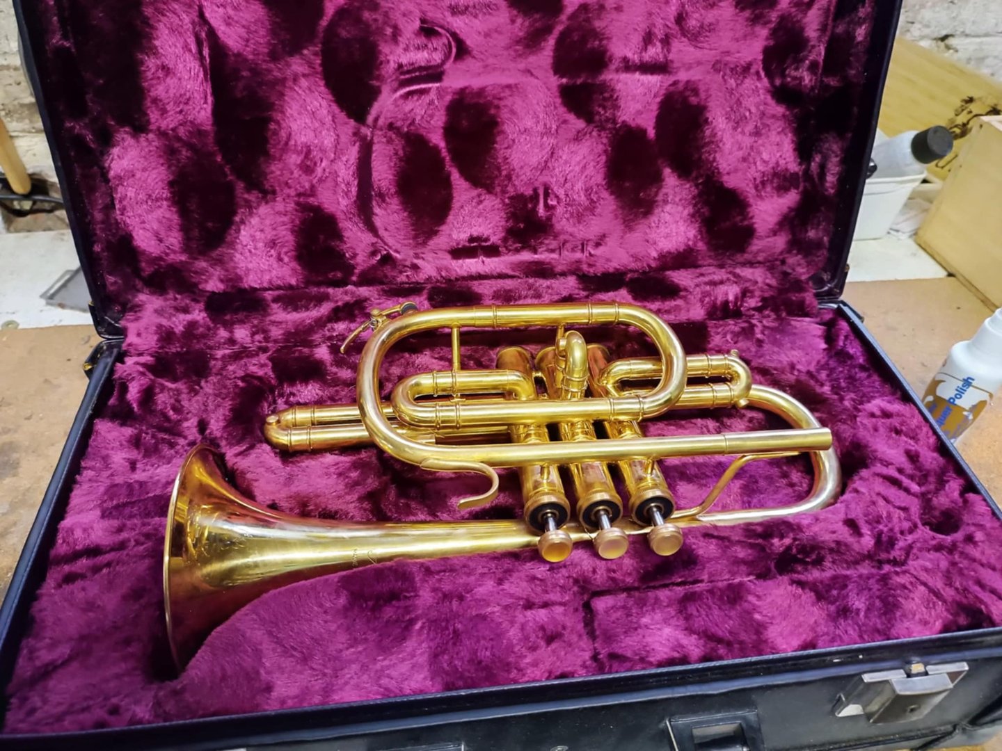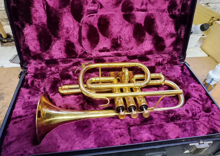 cornet pour débutant, déverni, remis à neuf, vendu avec étui d'origine